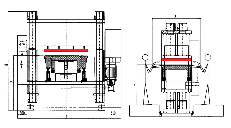 PT型:由一底座、一頂架及兩側(cè)機(jī)身組成,通過4根經(jīng)合理設(shè)計(jì)及熱處理的大型立柱連接在一起,立柱由4個液壓環(huán)帽固定;
